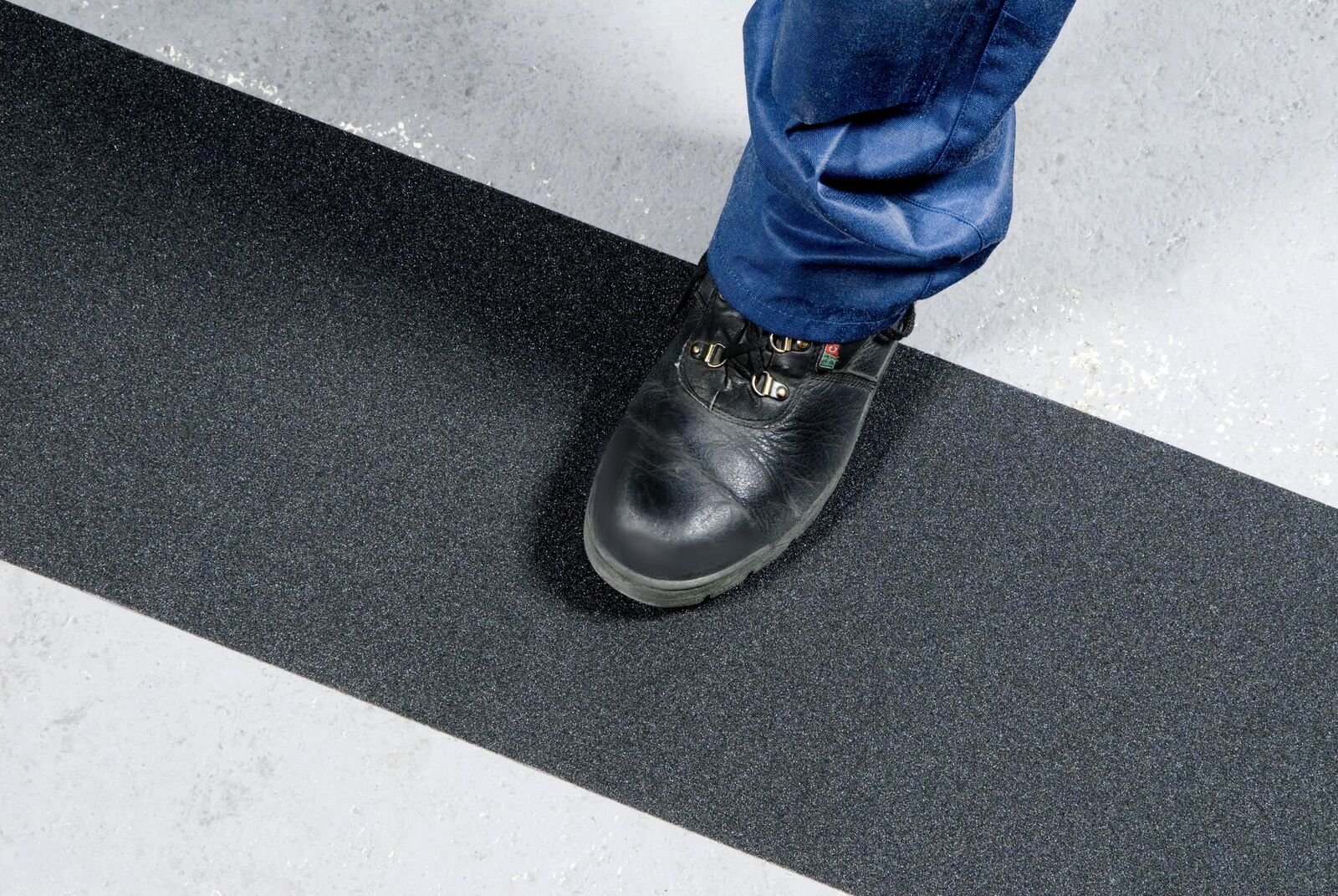Liukuesteteippi on nopea ja tehokas ratkaisu liukastumisen ehkäisyyn. Vaikka tilaa käytettäisiin vähän, kuten esimerkiksi hätäportaissa, teipin kiinnittäminen on kustannustehokas liukastumisenestoratkaisu.
